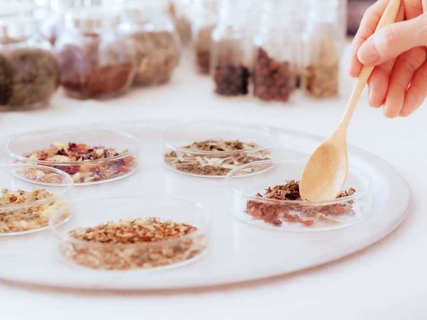 体と心を整えるハーブティー。見た目の可愛さに癒され。香りに解され、飲んで美味しく、芯から温まる。
